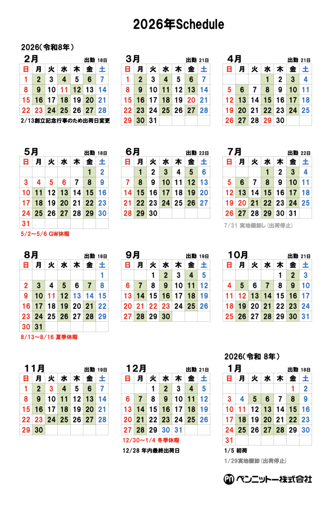 *具体的な出荷日は、添付「年間スケジュール表」をご参照ください。