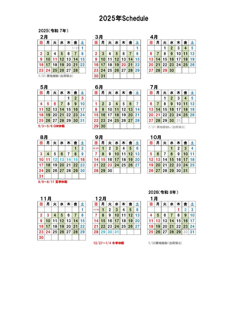 *具体的な出荷日は、添付「年間スケジュール表」をご参照ください。